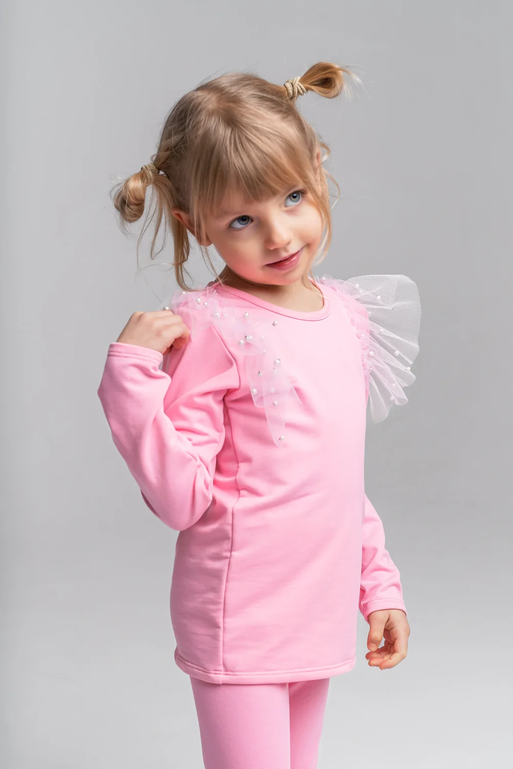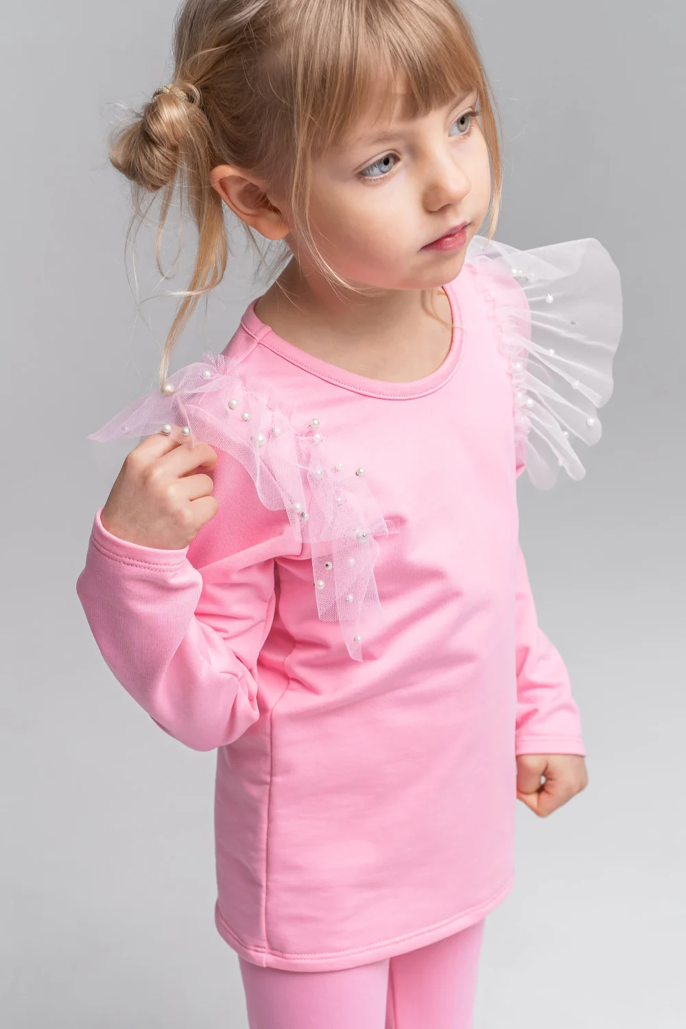 Prześliczna bluzka w kolorze cukierkowego różu to idealne połączenie wygody i elegancji. Model dla najmłodszych występuje w wersji body, a dla starszych dziewczynek jako klasyczna bluzka. Delikatne zdobienia z tiulu oraz subtelne perełki nadają całości wyjątkowego, dziewczęcego uroku i sprawiają, że produkt świetnie sprawdzi się zarówno na co dzień, jak i na uroczyste okazje.