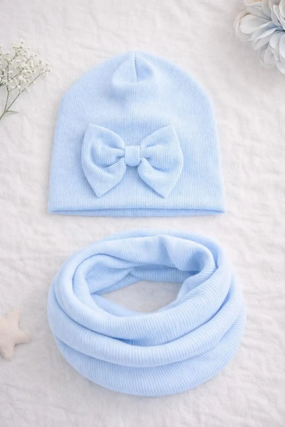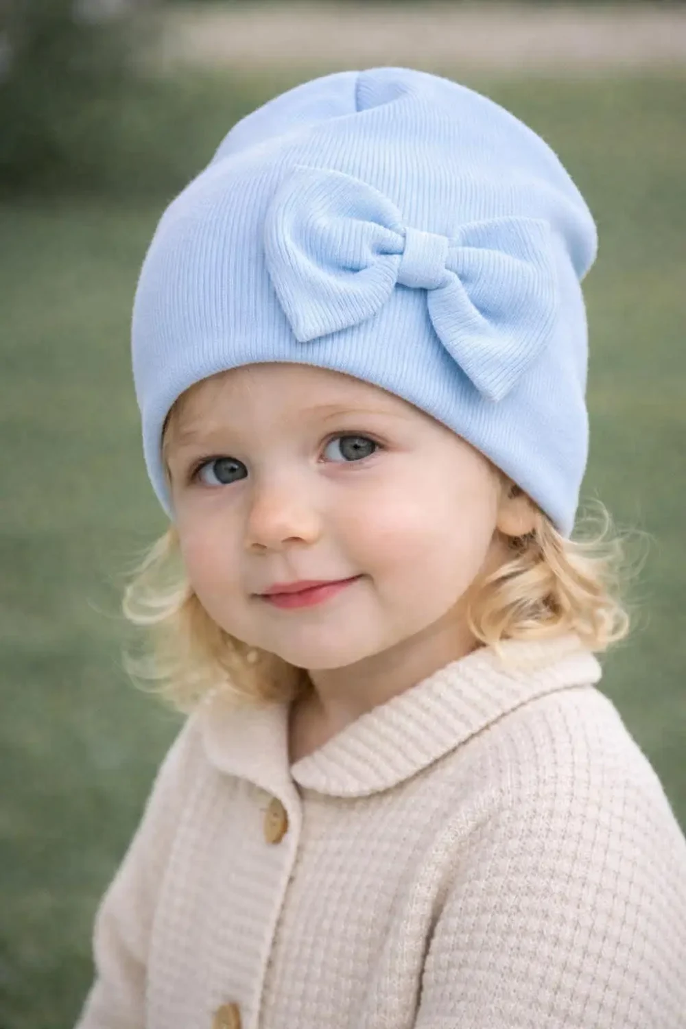 Czapka dziewczęca z bawełny prążkowanej z ozdobną kokardą