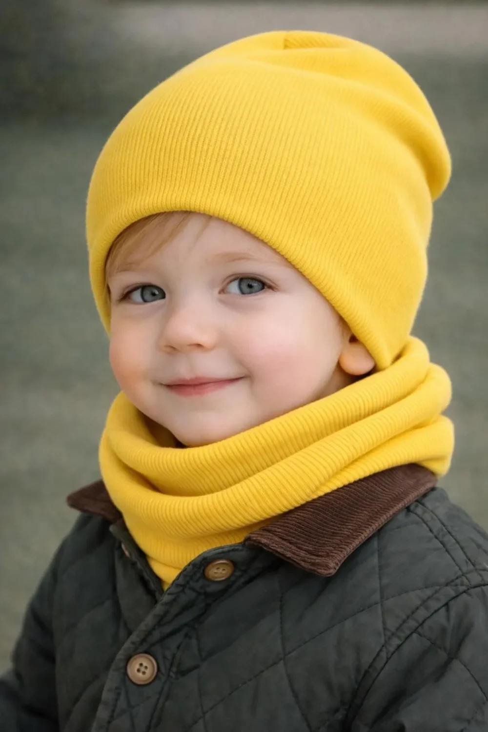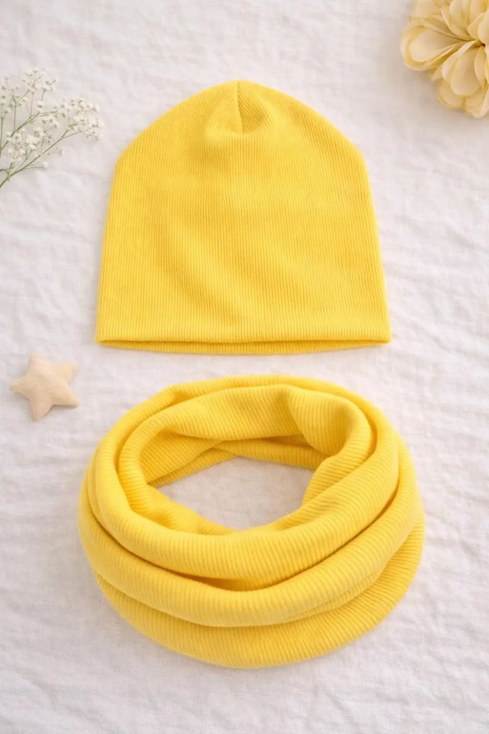 Czapka z bawełny prążkowanej dla chłopca słoneczny żółty