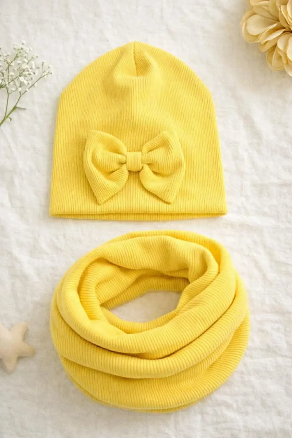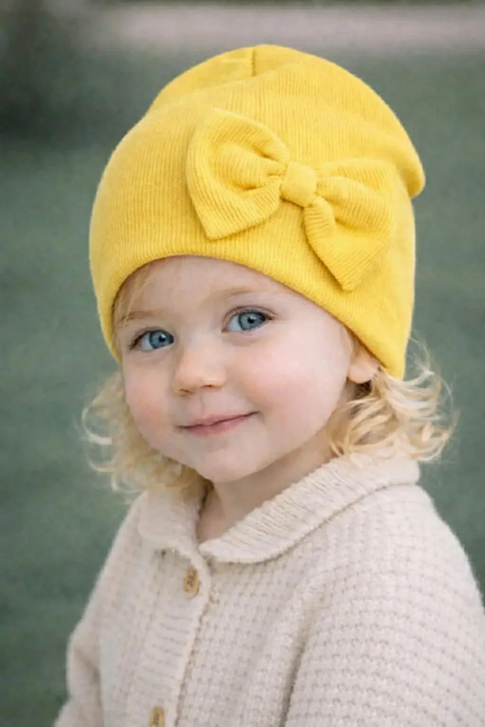 Czapka dziewczęca z bawełny prążkowanej z ozdobną kokardą