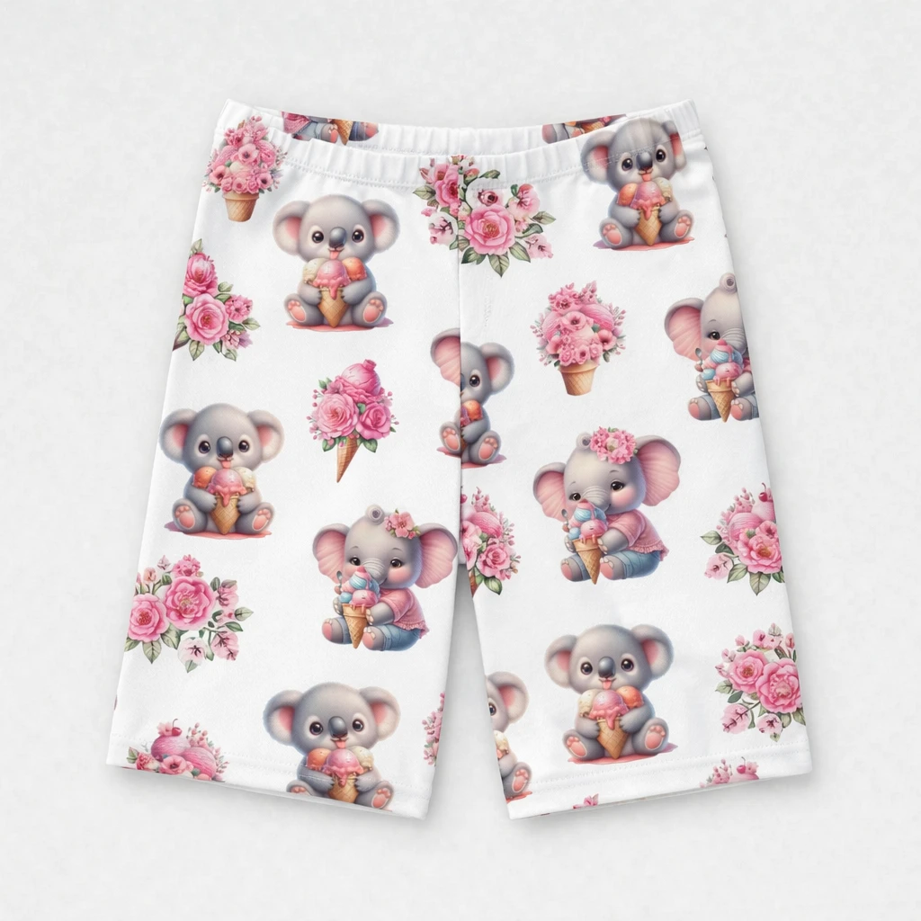 Wygodne kolarki dziewczęce z motywem koali i słoników to idealny wybór na ciepłe dni. Bajkowy wzór z lodami i kwiatami nadaje stylizacji lekkości i wyjątkowego uroku.