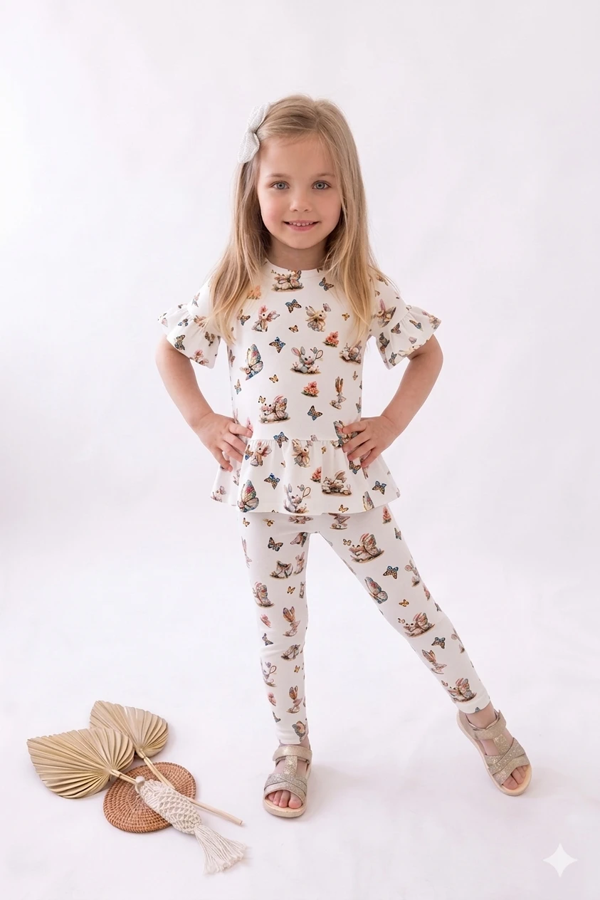 Urocze legginsy dziewczęce w delikatny wzór zwierzątek i motylków to idealne połączenie wygody i stylu. Doskonale dopasowują się do sylwetki dziecka, nie krępują ruchów i sprawdzają się zarówno na co dzień, jak i podczas aktywnej zabawy.