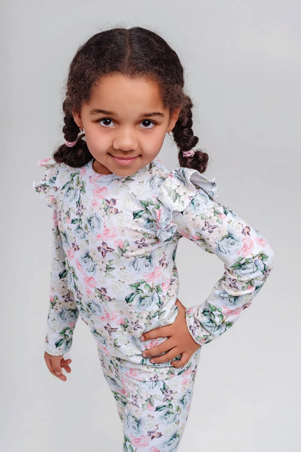 Bluzka dziewczęca z długim rękawem Efekt Motyla o elegancka i wyjątkowo dziewczęca propozycja, idealna na chłodniejsze dni. Oryginalny, kwiatowy wzór inspirowany motywem ogrodu
