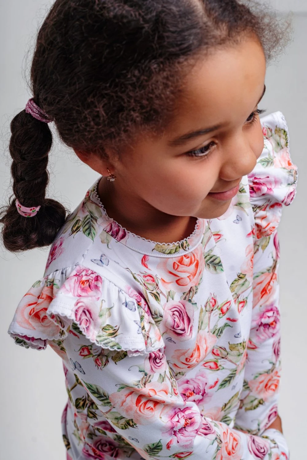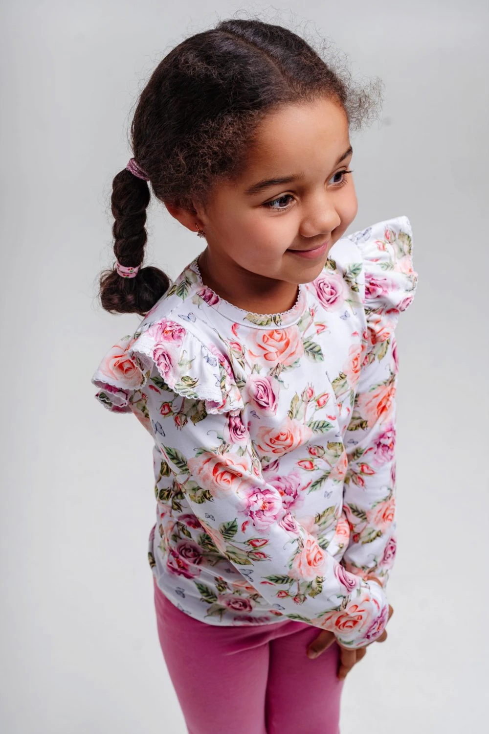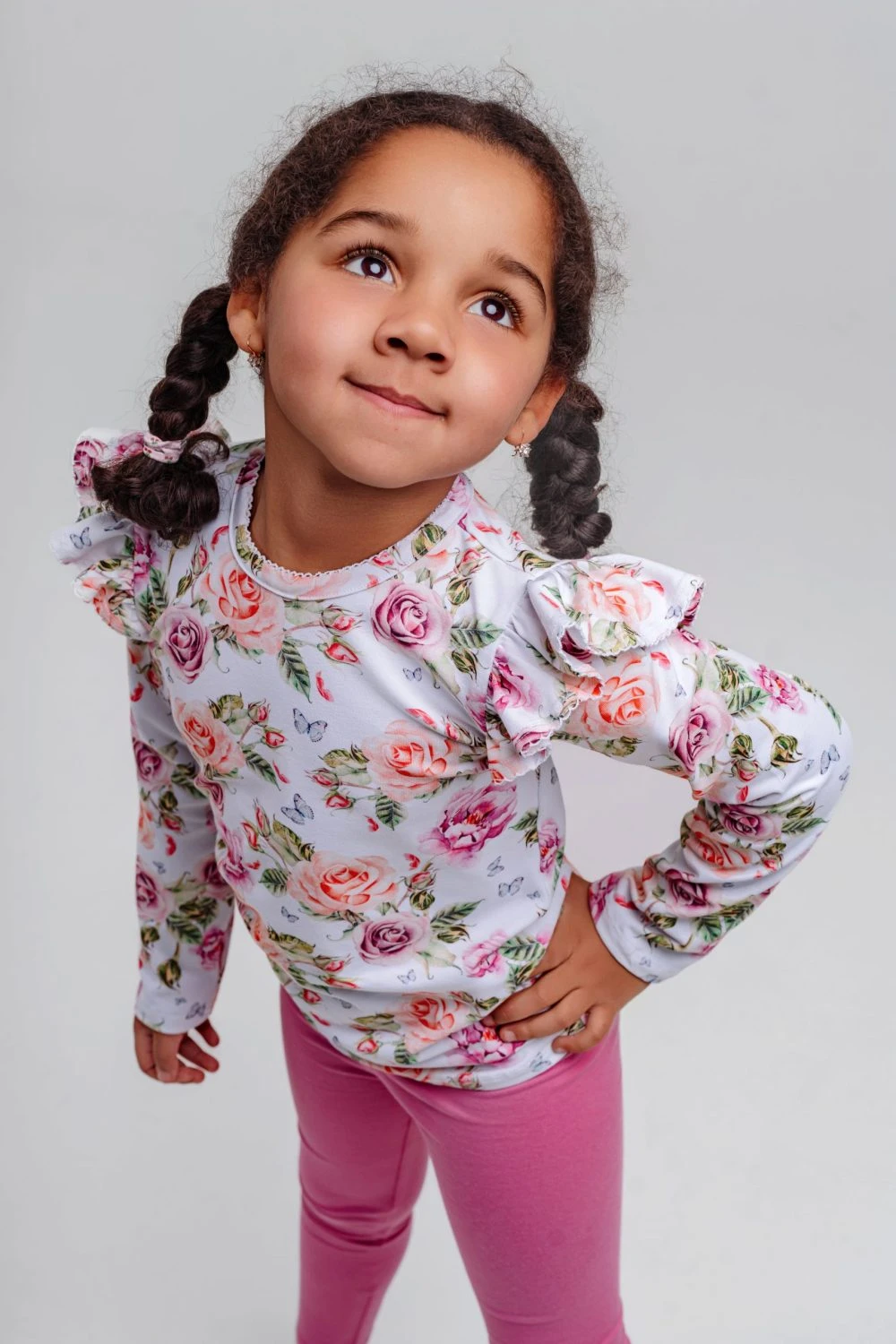 Bluzka dziewczęca w morelowe róże z motylkami to urocza i wygodna propozycja dla dziewczynek, które lubią delikatne, dziewczęce wzory. Subtelny motyw morelowych róż w połączeniu z kolorowymi motylkami tworzy lekką, wiosenno-letnią stylistykę, idealną na co dzień i na wyjątkowe okazje.