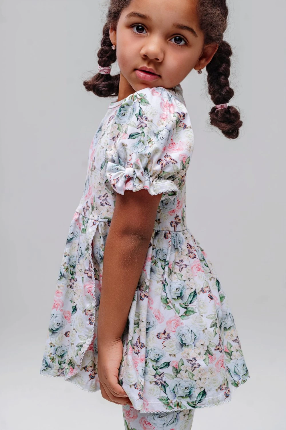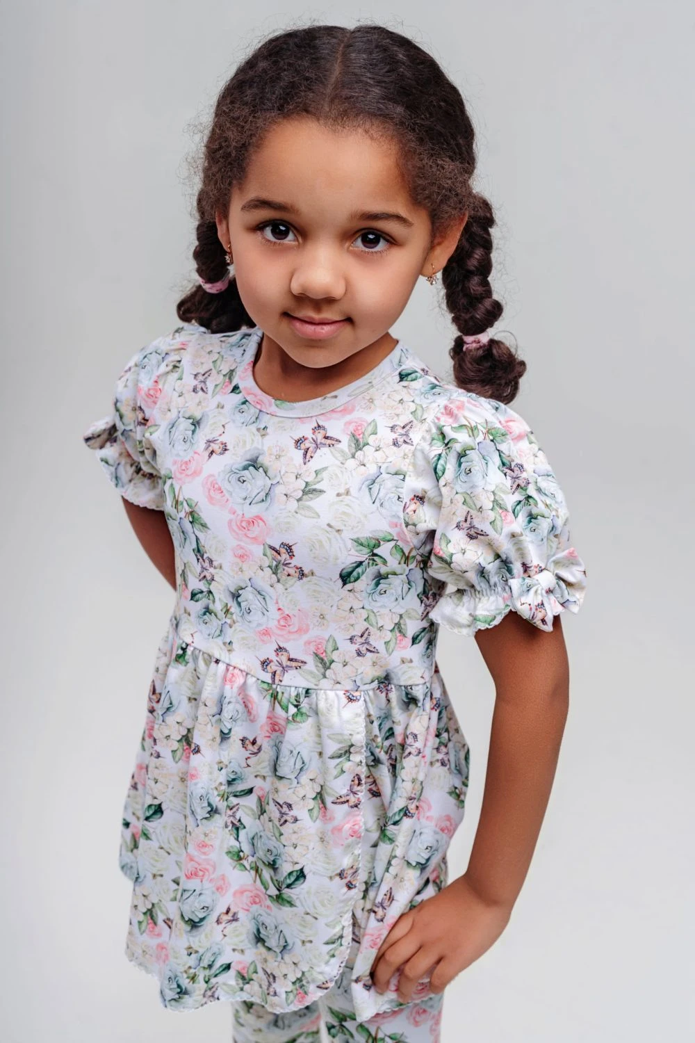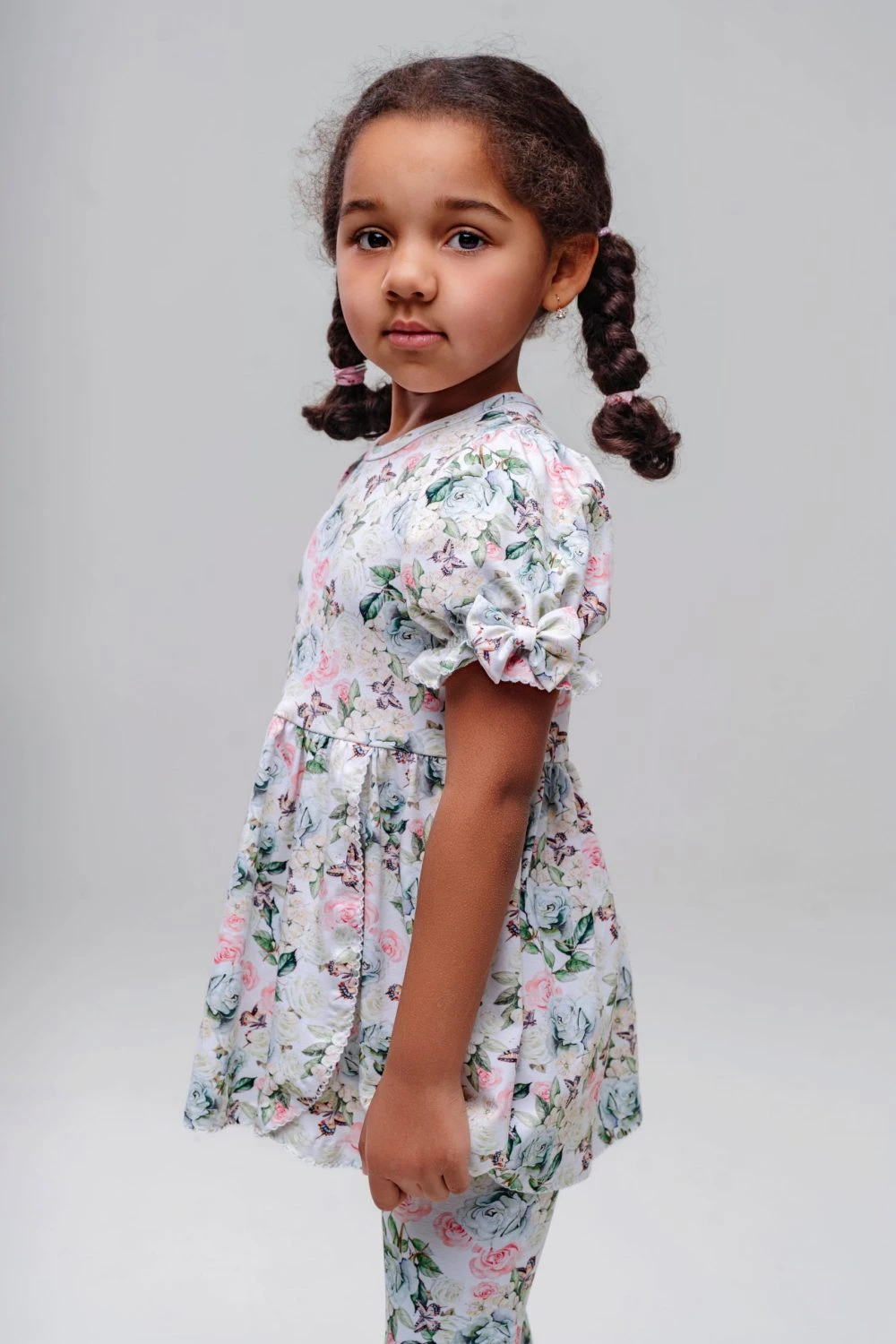 Tunika dziewczęca z krótkim rękawkiem „Efekt Motyla” to lekka, wygodna i niezwykle dziewczęca propozycja, idealna na cieplejsze dni. Oryginalny wzór inspirowany skrzydłami motyla nadaje tunice bajkowego charakteru i sprawia, że stylizacja przyciąga uwagę oraz podkreśla dziecięcą radość i swobodę.
