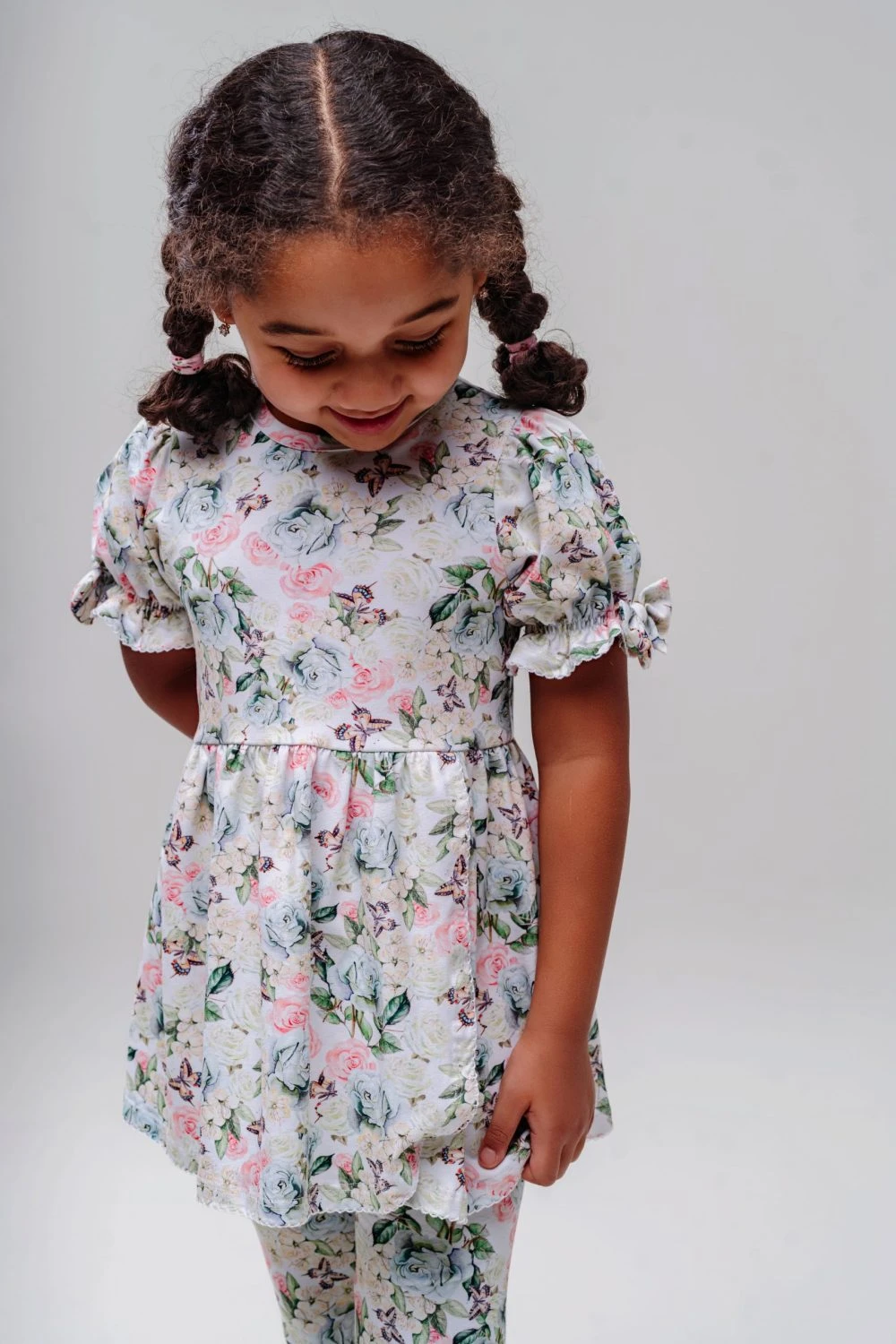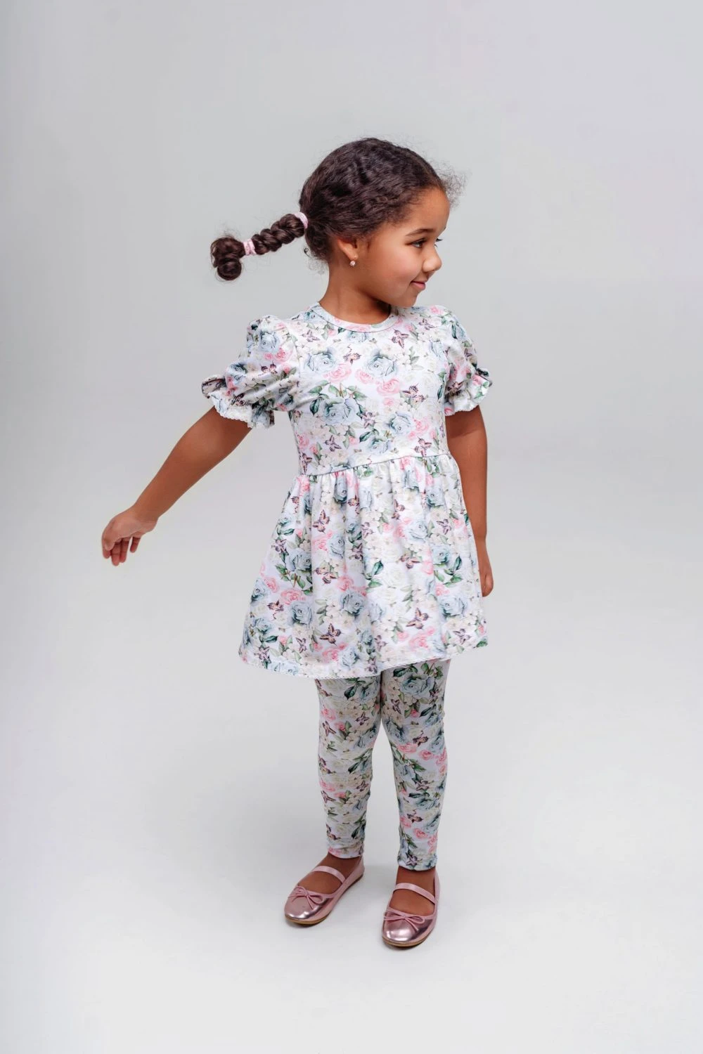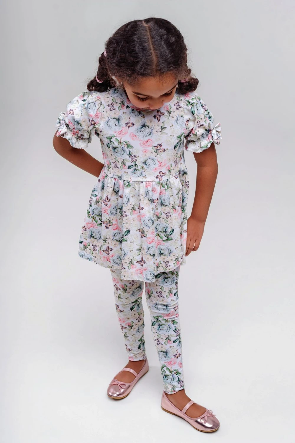 Tunika dziewczęca z krótkim rękawkiem „Efekt Motyla” to lekka, wygodna i niezwykle dziewczęca propozycja, idealna na cieplejsze dni. Oryginalny wzór inspirowany skrzydłami motyla nadaje tunice bajkowego charakteru i sprawia, że stylizacja przyciąga uwagę oraz podkreśla dziecięcą radość i swobodę.