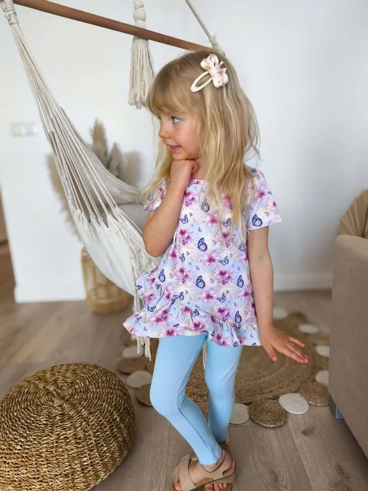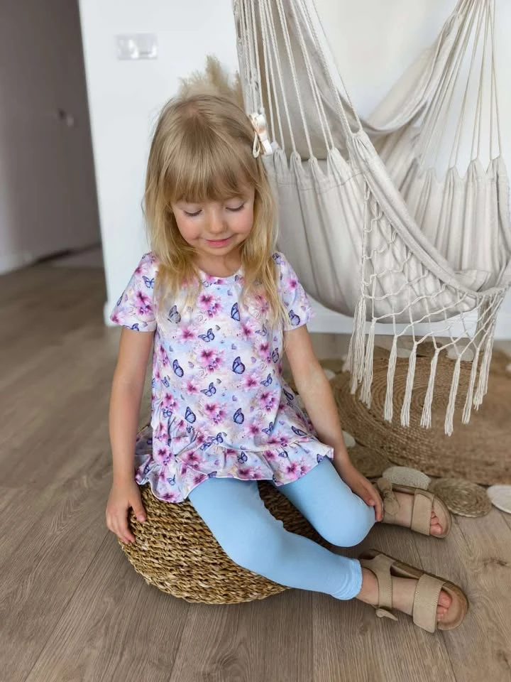 Prześliczna tunika dziewczęca „Kolorowy Motyl” z krótkim rękawem to idealny wybór na ciepłe dni. Kolorowy, radosny motyw motyla nadaje stylizacji wyjątkowo dziewczęcego, lekkiego i pogodnego charakteru. Tunika świetnie sprawdzi się na co dzień – do przedszkola, szkoły, na spacer, wakacje czy rodzinne wyjścia.