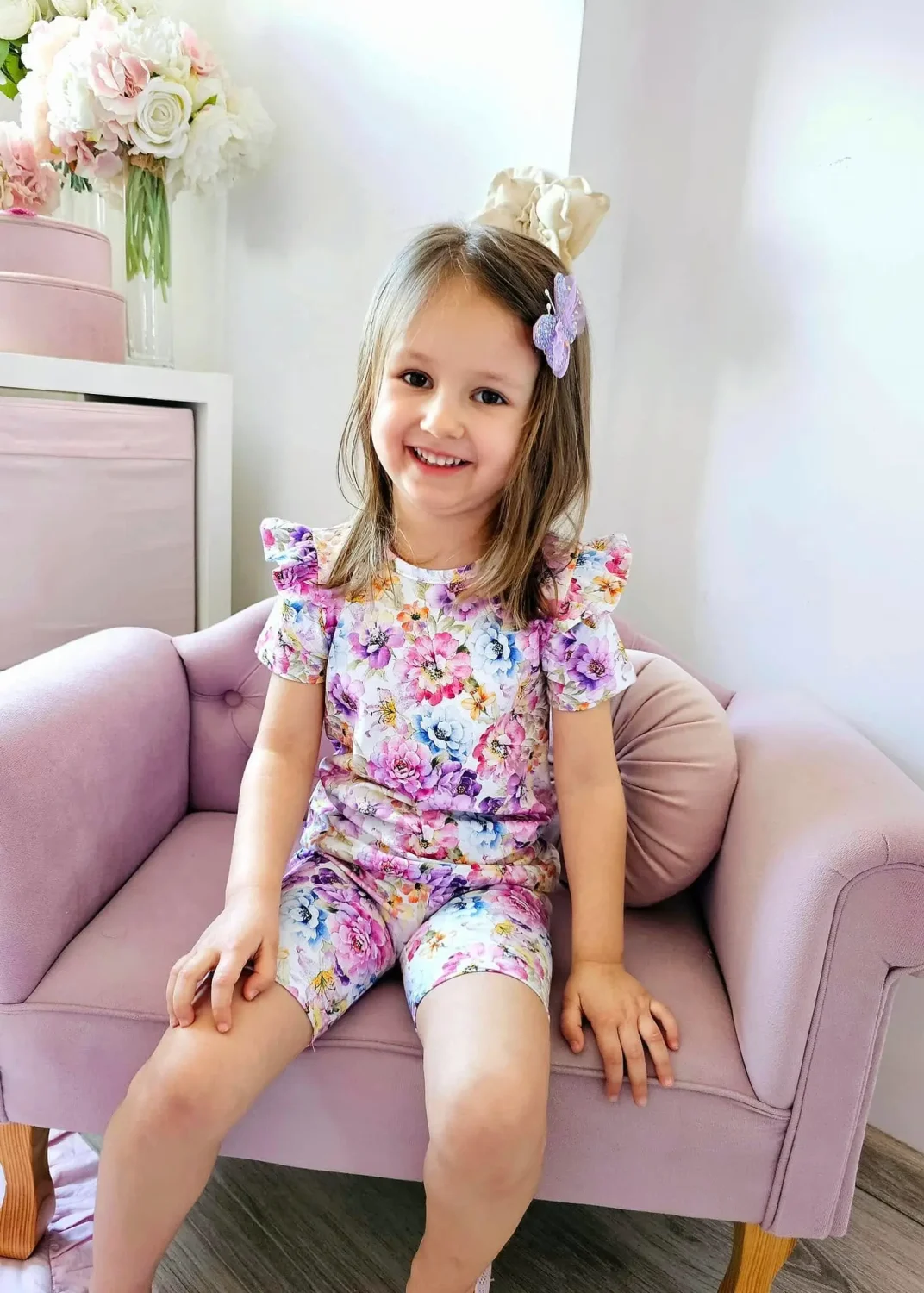 Wzór kolorowych kwiatów nadaje spodenkom dziewczęcego, radosnego charakteru i sprawia, że łatwo dopasować je do wielu stylizacji – zarówno z t-shirtem, tuniką, jak i bluzą. Elastyczna gumka w pasie gwarantuje wygodne dopasowanie i łatwe zakładanie.