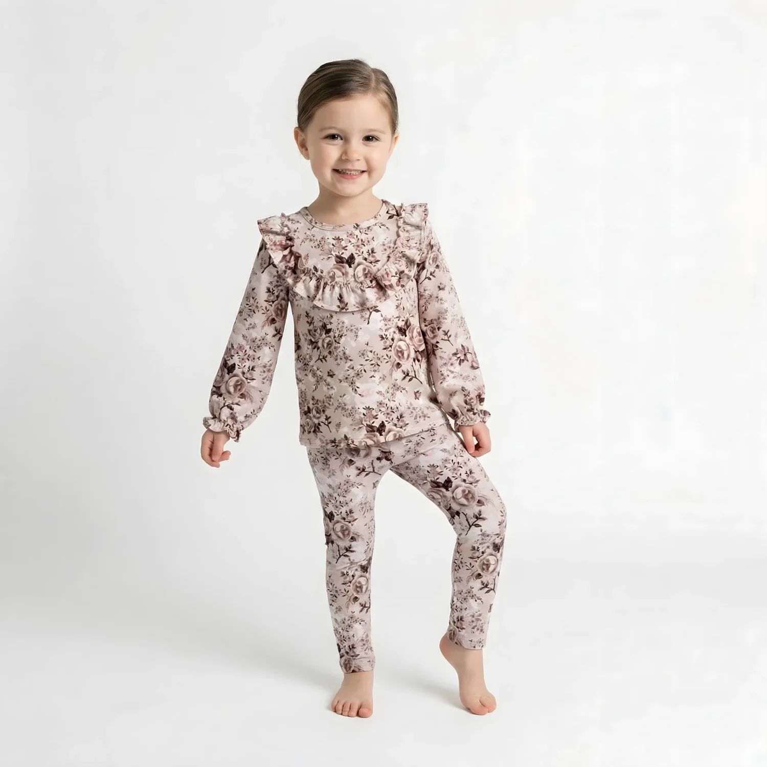 Legginsy dziewczęce beżowe w delikatne kwiaty – bawełniane, wygodne i elastyczne
